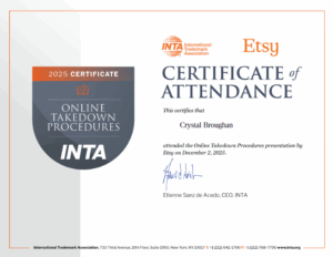 - International Trademark Association (INTA)‘s Online Takedown Procedures for ETSY