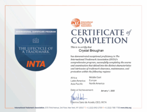 Shareholder Crystal Broughan’s practice focuses primarily on intellectual property (IP) matters such as trademarks, trade secrets, copyright infringement cases, and domain name disputes. She prepares and files trademark and copyright applications, licensing agreements, non-compete and non-disclosure agreements for a wide variety of clients. In addition, she represents clients before the Trademark Trials and Appeals Board on trademark disputes and the World Intellectual Property Organization on domain name disputes.